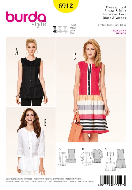 New Burda Style 6912 Ladies Summer Tops Dress Sewing Pattern Eur 34 46 7 95 Picclick Uk